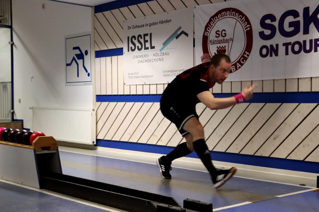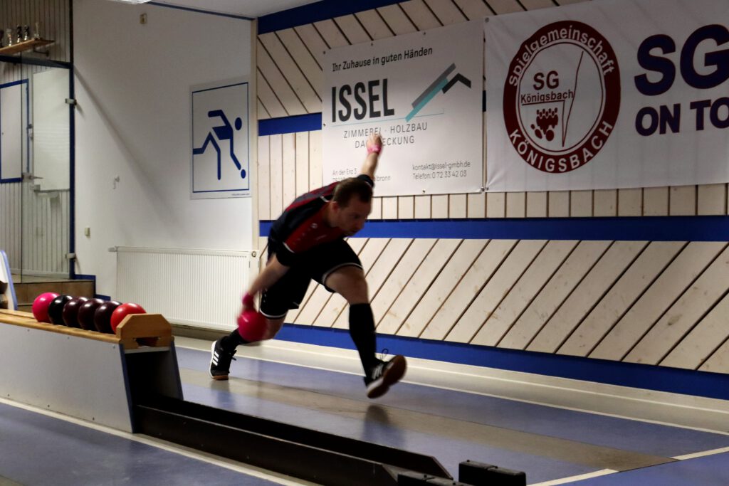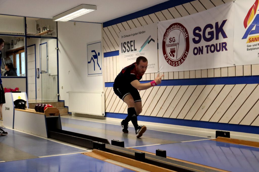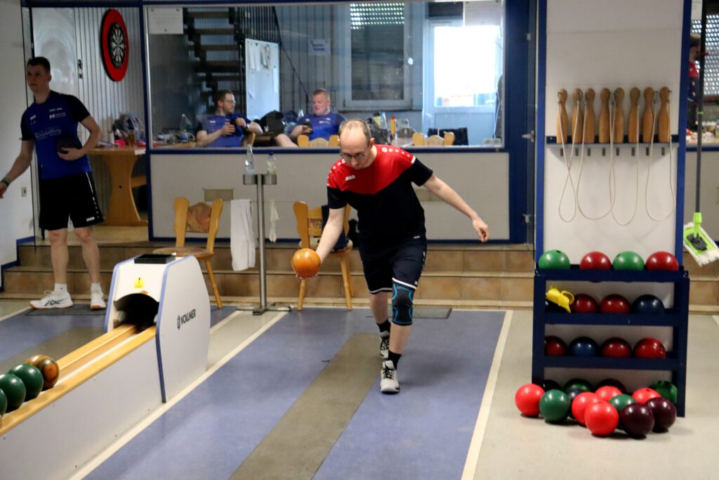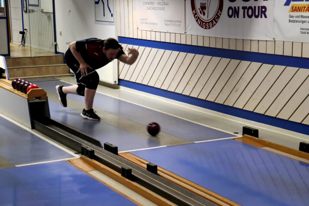 So war es ein perfekter Start und das Mittelpaar Nicolai und Flo konnten locker ins Spiel gehen. Flo begann etwas verhalten, aber legte auf den letzten beiden Bahnen nochmal furios los. Mit 341 Holz auf den letzten beiden Bahnen machte er sein Duell richtig spannend und katapultiert sich auf 606 Kegel! Leider musste er sich gegen den Tagesbesten knapp geschlagen geben. Nicolai zeigte ebenfalls ein sehr tolles Spiel und lieferte einen hochklassigen und spannenden Kampf um den Punkt. Beide Spieler konnten jeweils zwei Bahnen gewinnen und so entschied das Gesamtergebnis um den Punkt. Mit 597 Holz spielte Nicolai 5 Kegel mehr als sein Gegenspieler und holte so den Punkt.