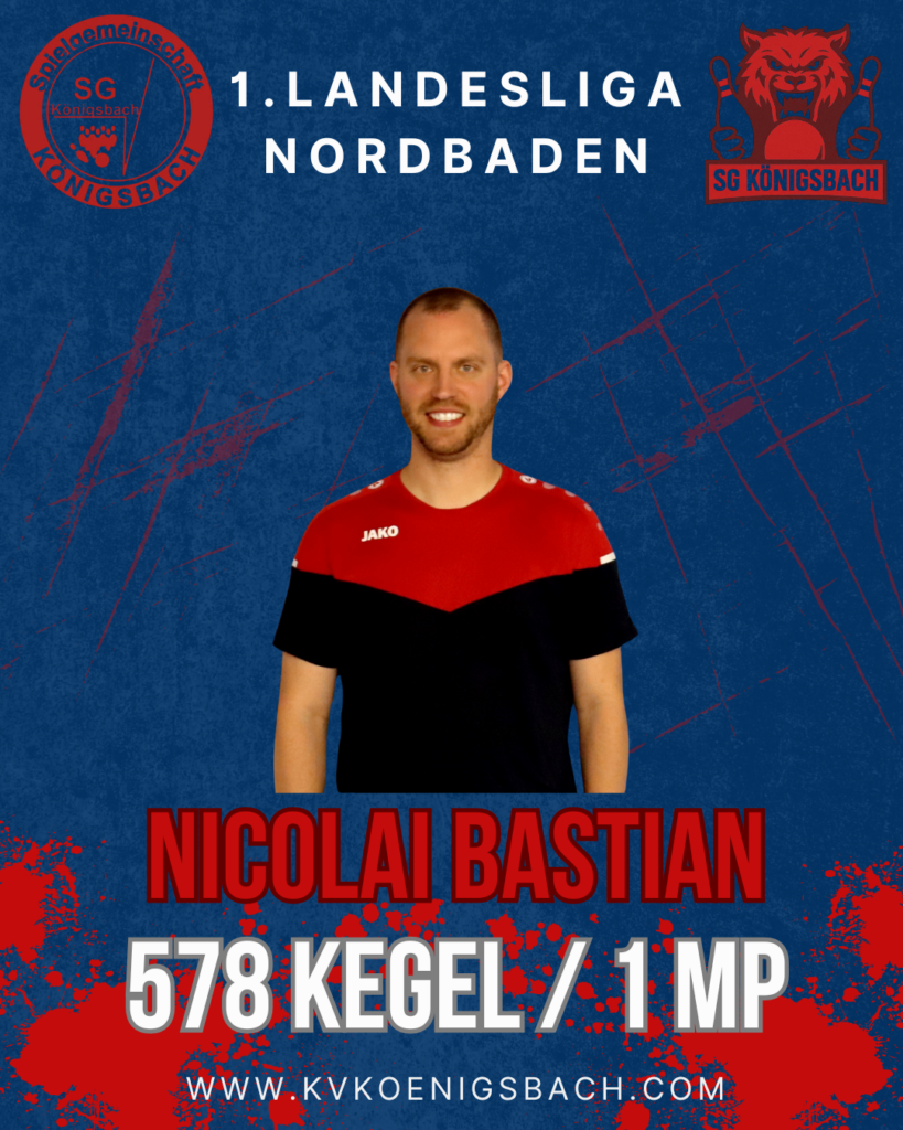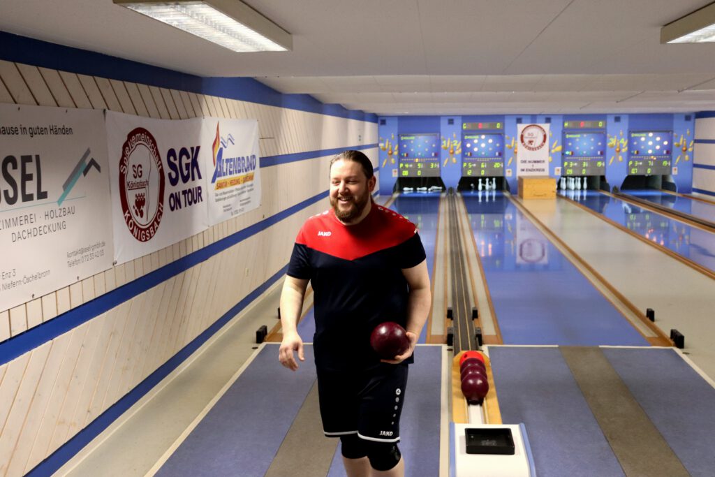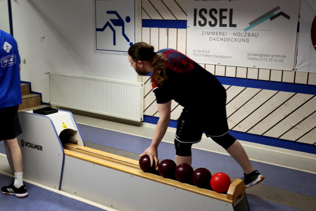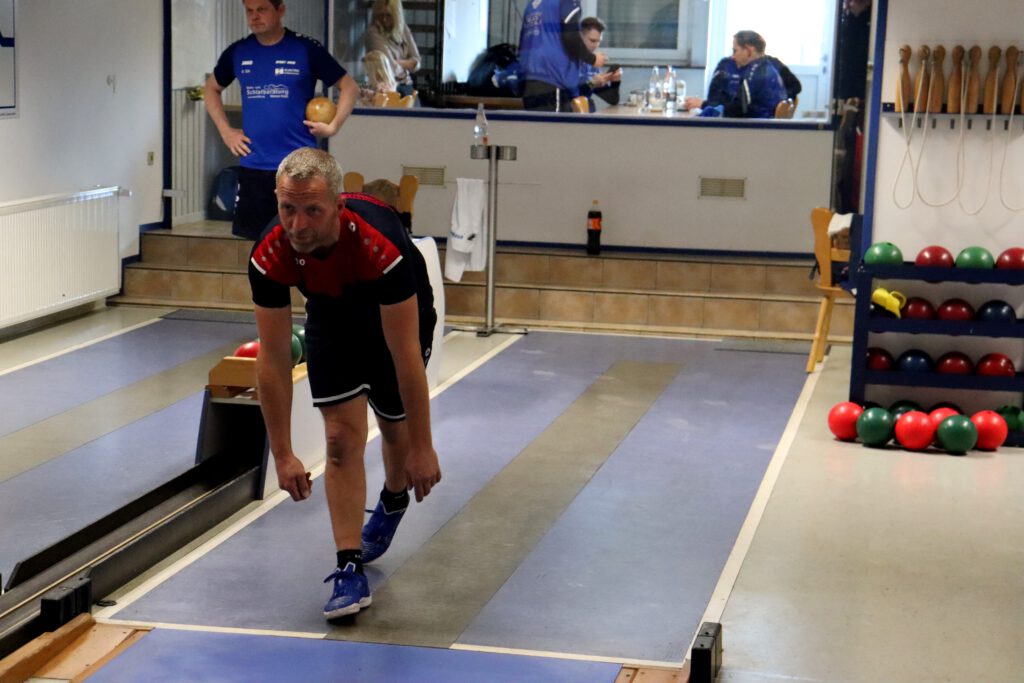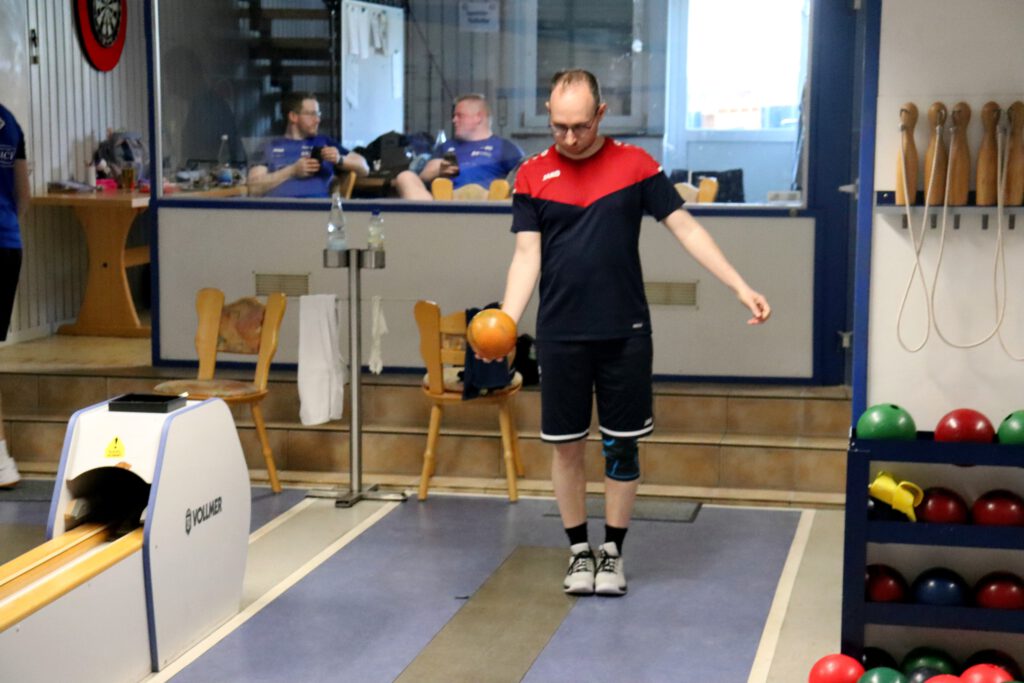 So war es ein perfekter Start und das Mittelpaar Nicolai und Flo konnten locker ins Spiel gehen. Flo begann etwas verhalten, aber legte auf den letzten beiden Bahnen nochmal furios los. Mit 341 Holz auf den letzten beiden Bahnen machte er sein Duell richtig spannend und katapultiert sich auf 606 Kegel! Leider musste er sich gegen den Tagesbesten knapp geschlagen geben. Nicolai zeigte ebenfalls ein sehr tolles Spiel und lieferte einen hochklassigen und spannenden Kampf um den Punkt. Beide Spieler konnten jeweils zwei Bahnen gewinnen und so entschied das Gesamtergebnis um den Punkt. Mit 597 Holz spielte Nicolai 5 Kegel mehr als sein Gegenspieler und holte so den Punkt.