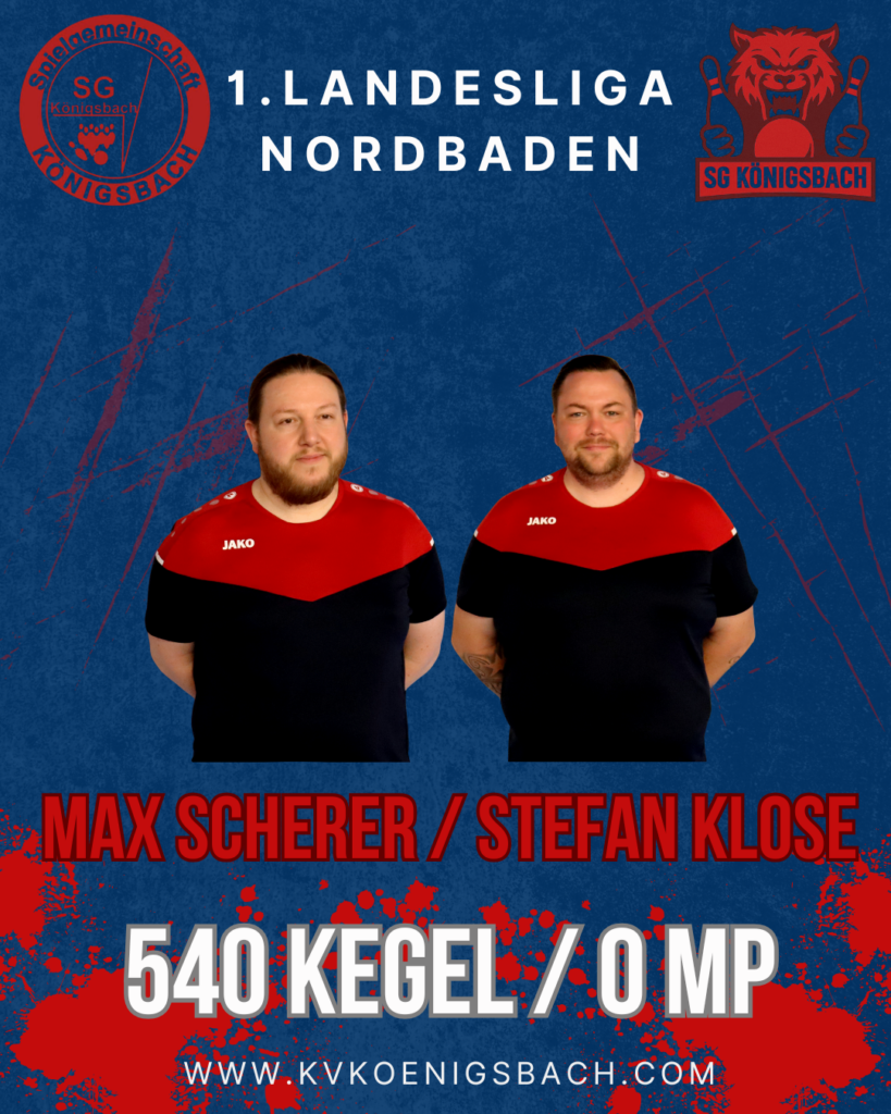 Mit einem 3:1 und über 50 Kegel Vorsprung gingen Micha und Stefan auf die Bahn und sollten den Sieg heim bringen. Die Gastgeber machten direkt Druck, doch die beiden hielten stark dagegen. In einem engen Duell entschied am Ende beim Michael auch das Gesamtergebnis. Auch hier waren 5 Kegel ausschlaggebend und mit 576 Holz reichte es Michael den Punkt zu holen. Stefan gewann die erste Bahn aber konnte dann den gut aufspielenden Gegner nicht halten. Er verlor das Duell trotz einem guten Ergebnis von 562 Holz.