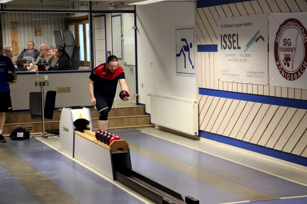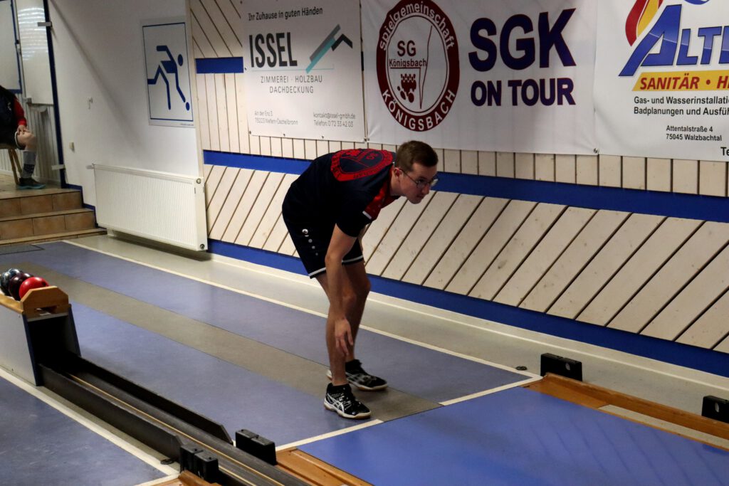 Schon im Start war sichtbar, dass unsere Jungs mit der Anlage gut zurecht kommen. Max ließ seinem Gegenspieler vom Start an wenig Chance und gewann sein Duell mit 3:1 deutlich. Dabei erzielte er ein gutes Ergebnis von 588 Holz. Steven machte es hier etwas spannender und konnte dank einer starken Schlussbahn das Duell gewinnen. Mit 584 Holz zeigte auch er eine tolle Leistung.