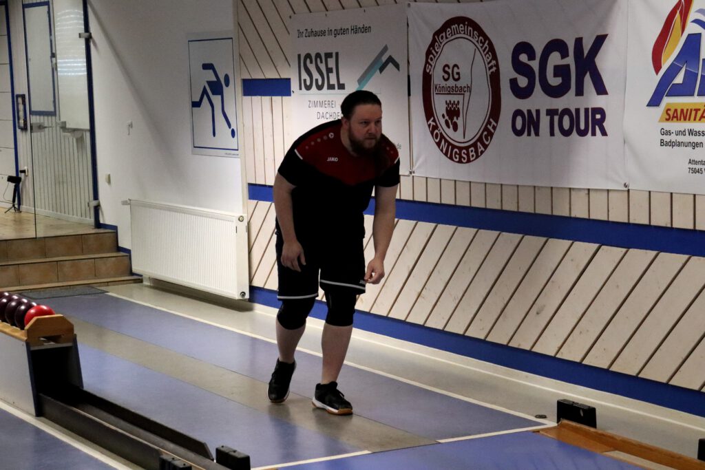 Das Schlusspaar konnte dadurch etwas beruhigter mit einem 3:1 Vorsprung und einem Plus von 85 Holz in die Endrunde gehen. Nicolai ging mit viel Selbstvertrauen aus den Vorwochen ins Spiel und dies spürte man auch. Mit 3:1 und einem guten Gesamtergebnis von 569 Holz gewann er sicher sein Duell. Bei Stefan lief am Samstag nicht ganz so viel zusammen. Er blieb auf allen Bahnen unter seinen eigenen Möglichkeiten und verlor dann auch mit 1:3 den Punkt und kam nur auf 513 Kegel.