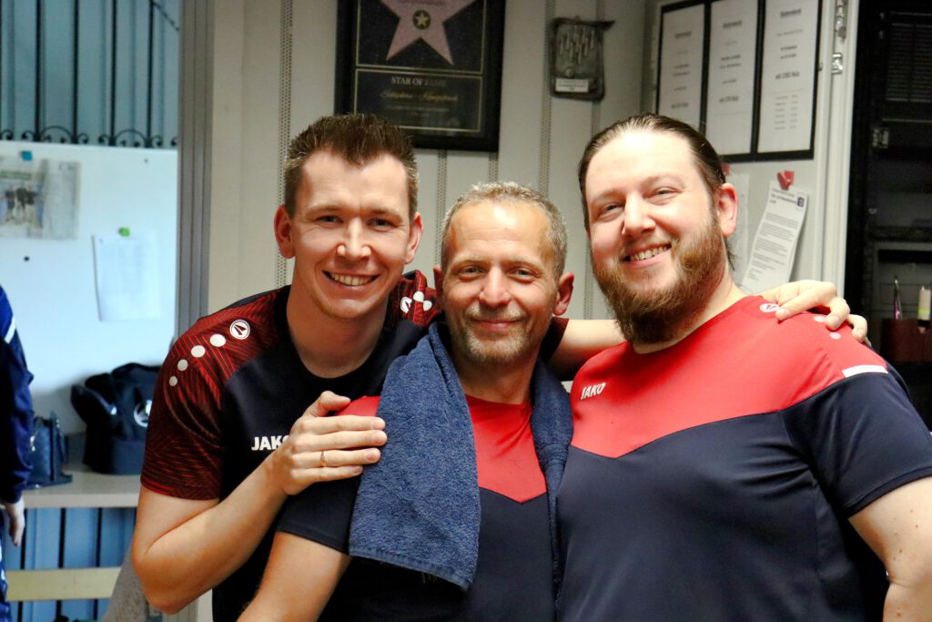 Das Mittelduo ging mit einem 1:1 unentschieden und 10 Kegel Vorsprung ins Rennen. Steven lieferte sich ein tolles und spannendes Duell auf Augenhöhe mit seinem Gegenspieler. Nach verhaltenem Start drehten beide auf und es endete mit 2,5 zu 1,5 Satzpunkten für Steven. Mit 574 Holz erzielte er das Tagesbestergebnis. Bei Matthias war es hingegen ein klareres Duell. Lediglich die zweite Bahn musste er abgeben, aber drehte dann nochmal auf und gewann sein Duell mit 3:1 und guten 542 Holz.