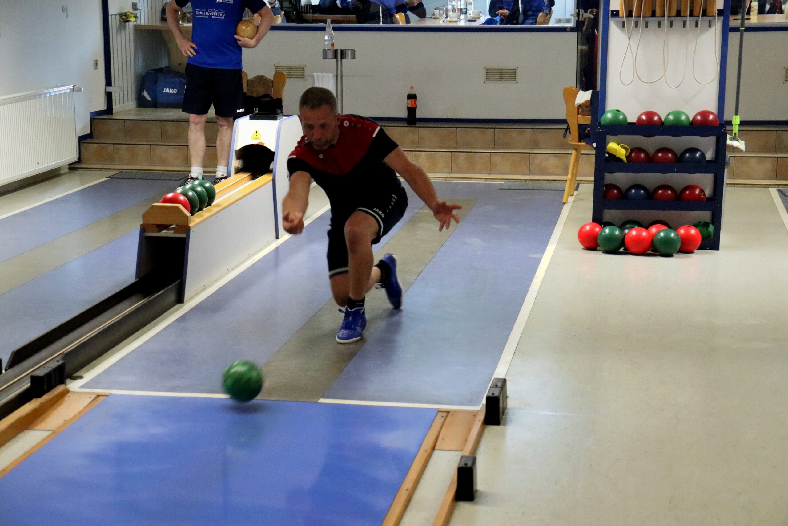So war es ein perfekter Start und das Mittelpaar Nicolai und Flo konnten locker ins Spiel gehen. Flo begann etwas verhalten, aber legte auf den letzten beiden Bahnen nochmal furios los. Mit 341 Holz auf den letzten beiden Bahnen machte er sein Duell richtig spannend und katapultiert sich auf 606 Kegel! Leider musste er sich gegen den Tagesbesten knapp geschlagen geben. Nicolai zeigte ebenfalls ein sehr tolles Spiel und lieferte einen hochklassigen und spannenden Kampf um den Punkt. Beide Spieler konnten jeweils zwei Bahnen gewinnen und so entschied das Gesamtergebnis um den Punkt. Mit 597 Holz spielte Nicolai 5 Kegel mehr als sein Gegenspieler und holte so den Punkt.